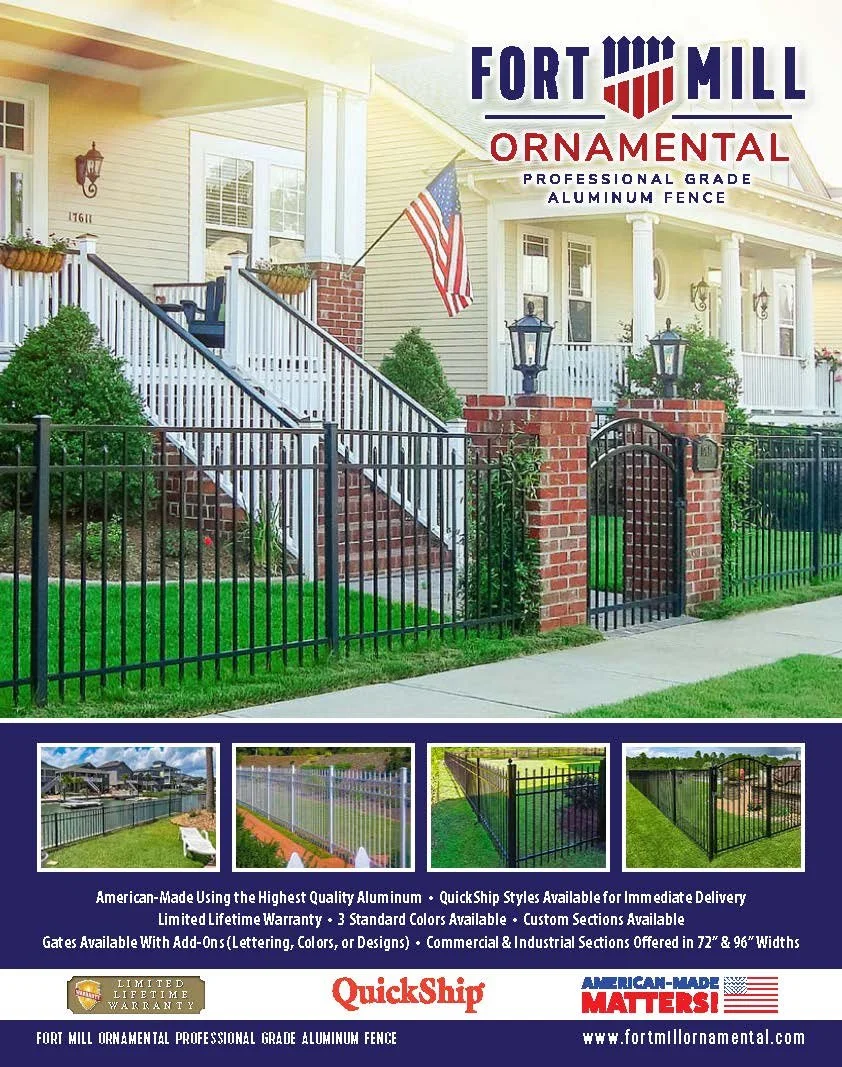 With the appearance of wrought iron and the benefits of maintenance-free aluminum, Eastern’s Fort Mill Ornamental products are sure to add value and character to any home. With our state-of-the-art in-house automated powder coating line, Eastern Fence can assure you that our Fort Mill Ornamental aluminum coatings will last. A 3000 hour salt spray test is just part of the AAMA 2604 certification. We submit our products for testing on a regular basis to assure compliance. With the AAMA 2604 certification, Eastern Fort Mill Ornamental aluminum fencing is the perfect choice to surround your pool, pond or other water feature. Offered in 6 styles, 3 stock colors, multiple heights, 4 picket configurations and 3 grades.