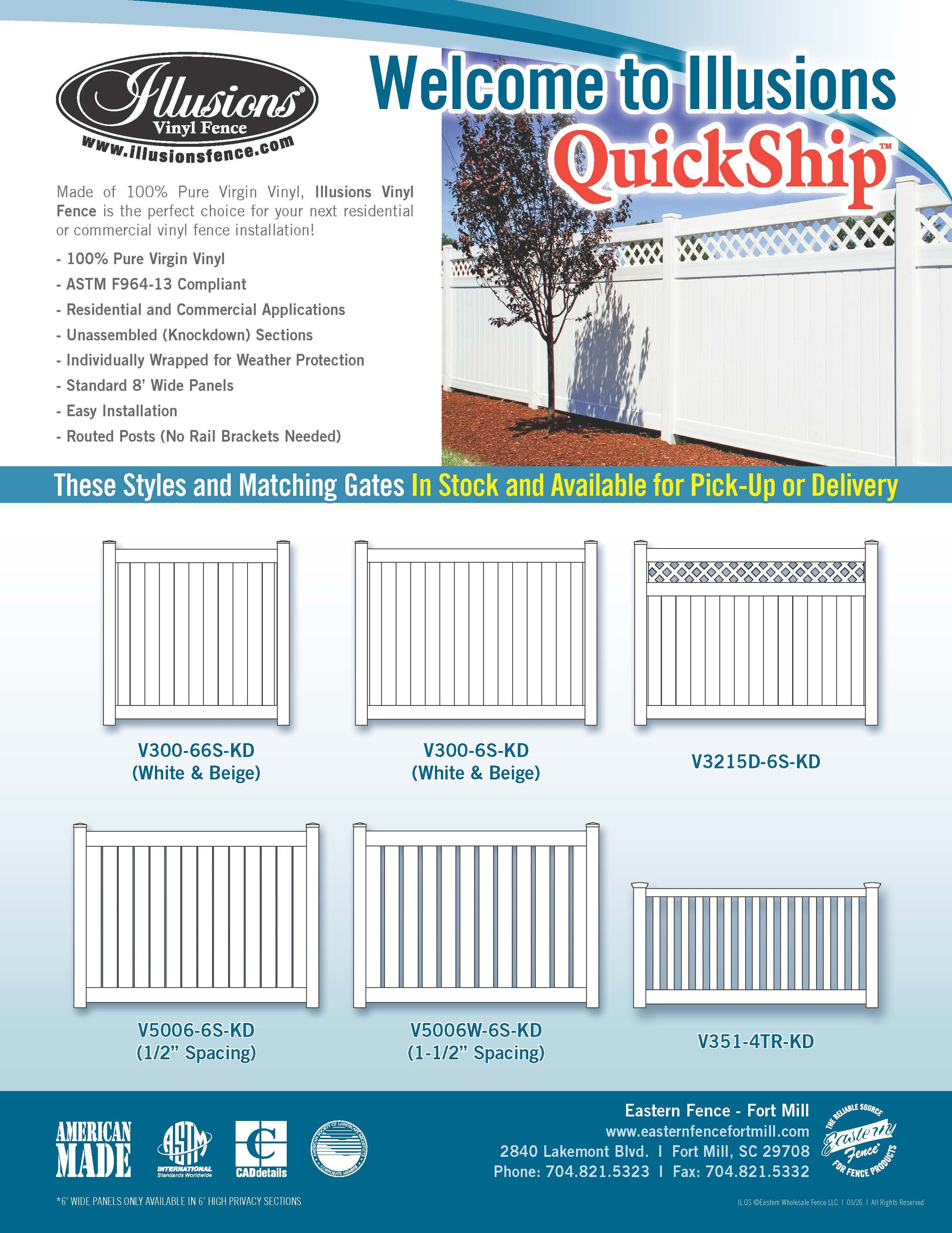 All of are Illusions Vinyl Fencing is fabricated from the highest quality 100% Pure Virgin Vinyl. In addition to the standard testing like impact, weather, and wind, Illusions Vinyl focuses on the cell classification of the Polyvinyl Chloride (PVC) based on the American Society of Testing and Materials (ASTM) standards. Our vinyl fencing is offered in Privacy, Semi-Privacy, Picket and Ranch Rail designs. We offer several heights and multiple colors. Find out more about Illusions Fence Products here. www.illusionsfence.com.